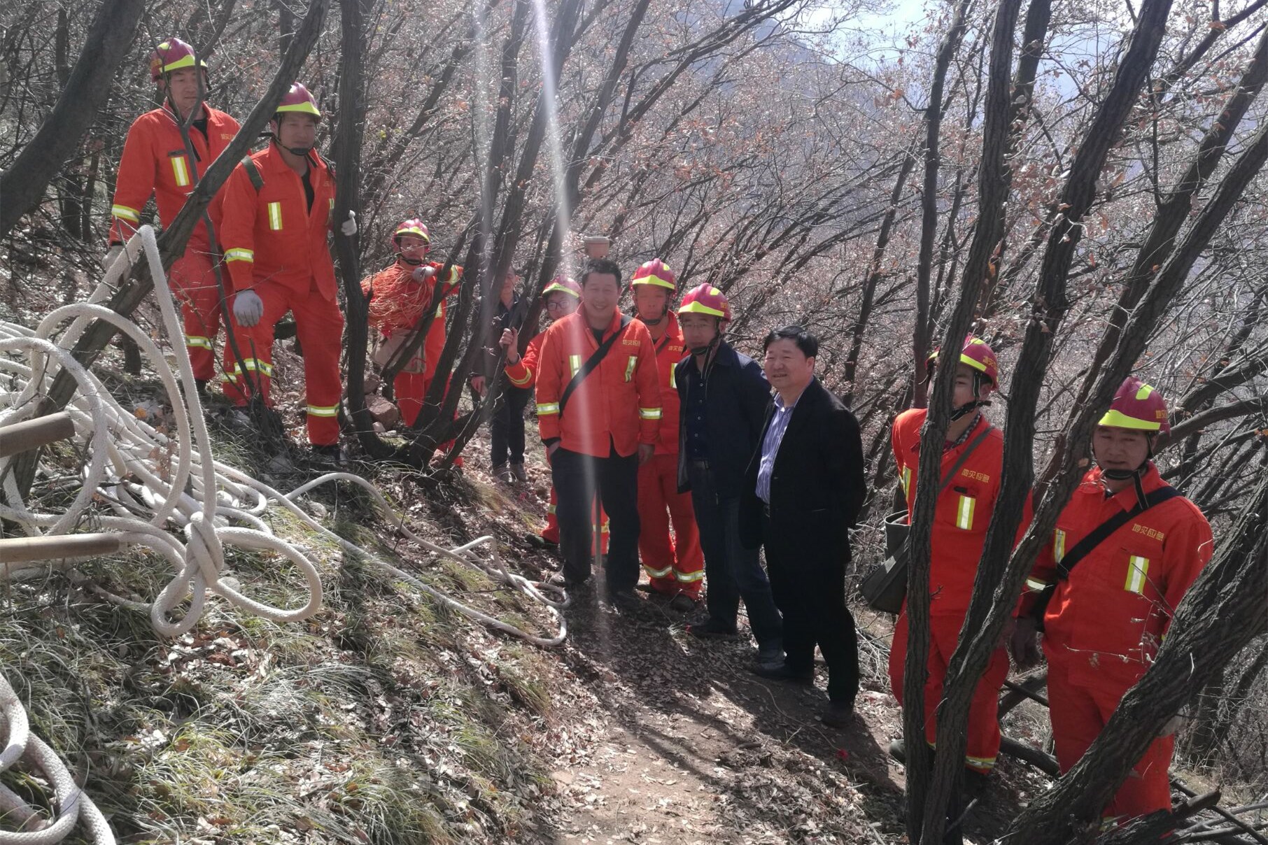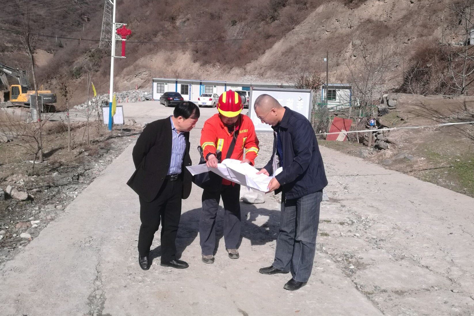 ? ? 該項目由公司所屬西安地質災害智能監測預警技術服務中心承擔,工區山高坡陡、荊棘密布,給勘查工作帶來極大困難。公司領導一行踏著崎嶇的山路來到施工現場,聽取項目負責人工作匯報,認真查看現場施工安全狀況,仔細詢問施工管理和進度,并強調,要嚴格加強現場安全教育管理,保證工作質量和安全的前提下推進施工進度,克服一切困難,確保勘查工作順利進行。