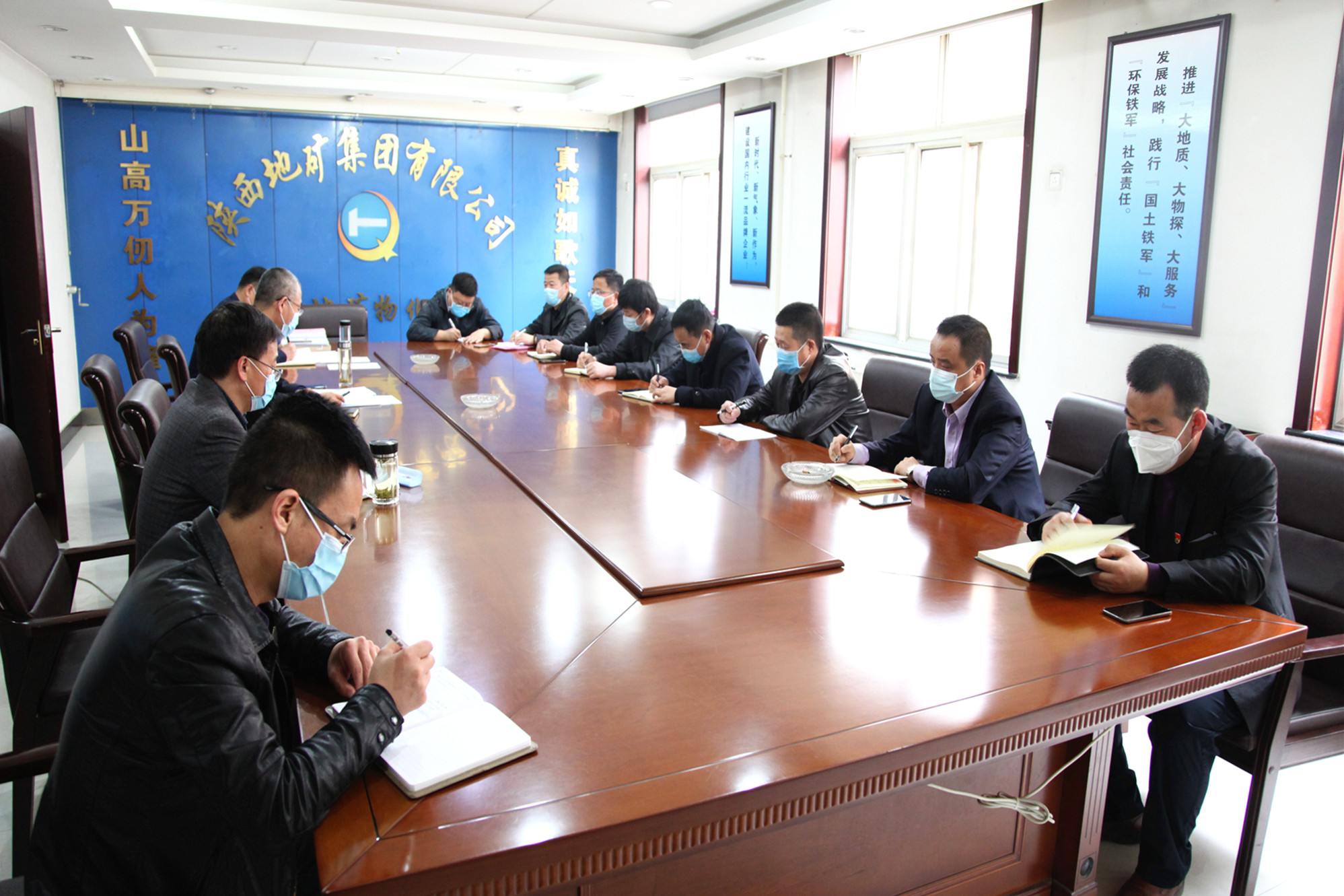 ? ? 3月16下午,陜西地礦物化探隊有限公司召開2020年第一季度安委會會議,黨委書記、執行董事、總經理王新坪作重要講話。主管安全的黨委副書記、紀委書記、安委會副主任李新勝主持會議。安委會全體成員參加會議。