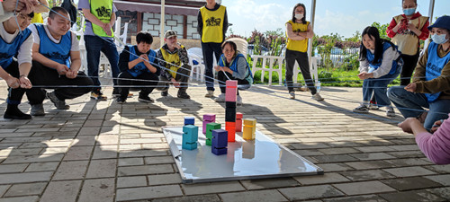? ? 團建活動在歌聲嘹亮的《團結就是力量》、《沒有共產黨就沒有新中國》的紅歌中拉開序幕,團建活動項目以集體協作和分隊比拼的形式開展,分別進行了定點打卡、對弈四字棋、畫圖猜成語、合力建塔等精彩紛呈的團隊拓展活動。每一個項目都需要隊員們集思廣益、分工協作、互相依靠、相互信任,齊心協力共同戰勝困難,通過任務的逐項完成使大家感受到了合作與溝通的重要性,體驗著奉獻、協作、自信帶來的成功喜悅。
