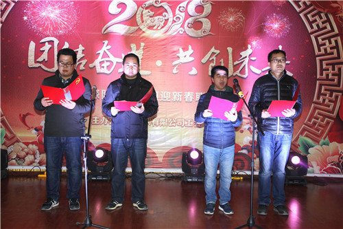 ? ? 隊黨委書記、執(zhí)行董事、總經(jīng)理王新坪發(fā)表了新年致辭,首先向全體職工及支持物化探隊發(fā)展的家屬、各界朋友致以新年的問候。他回顧了2017年物化探隊取得的成績,指出在2018年面臨的新挑戰(zhàn),并勉勵全體職工圍繞“大地質(zhì)、大物探、大服務(wù)”的發(fā)展戰(zhàn)略,不忘初心、牢記使命、勇往直前,全面貫徹“物化探+”發(fā)展理念,發(fā)揚(yáng)“崇隊敬業(yè)、創(chuàng)新發(fā)展”為核心的企業(yè)文化,鍛造“真誠如歌天地遠(yuǎn),山高萬仞人為峰”的企業(yè)精神。