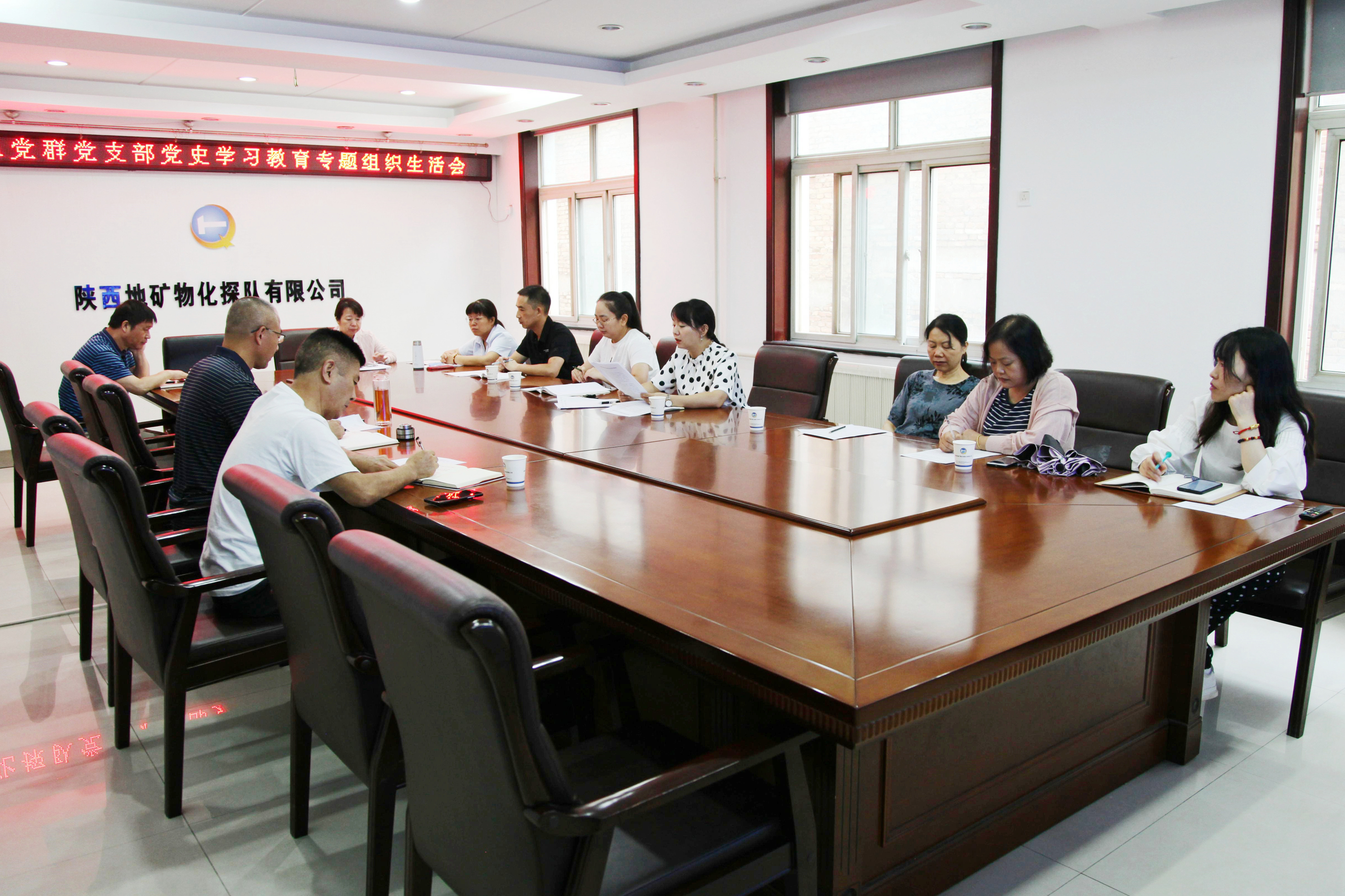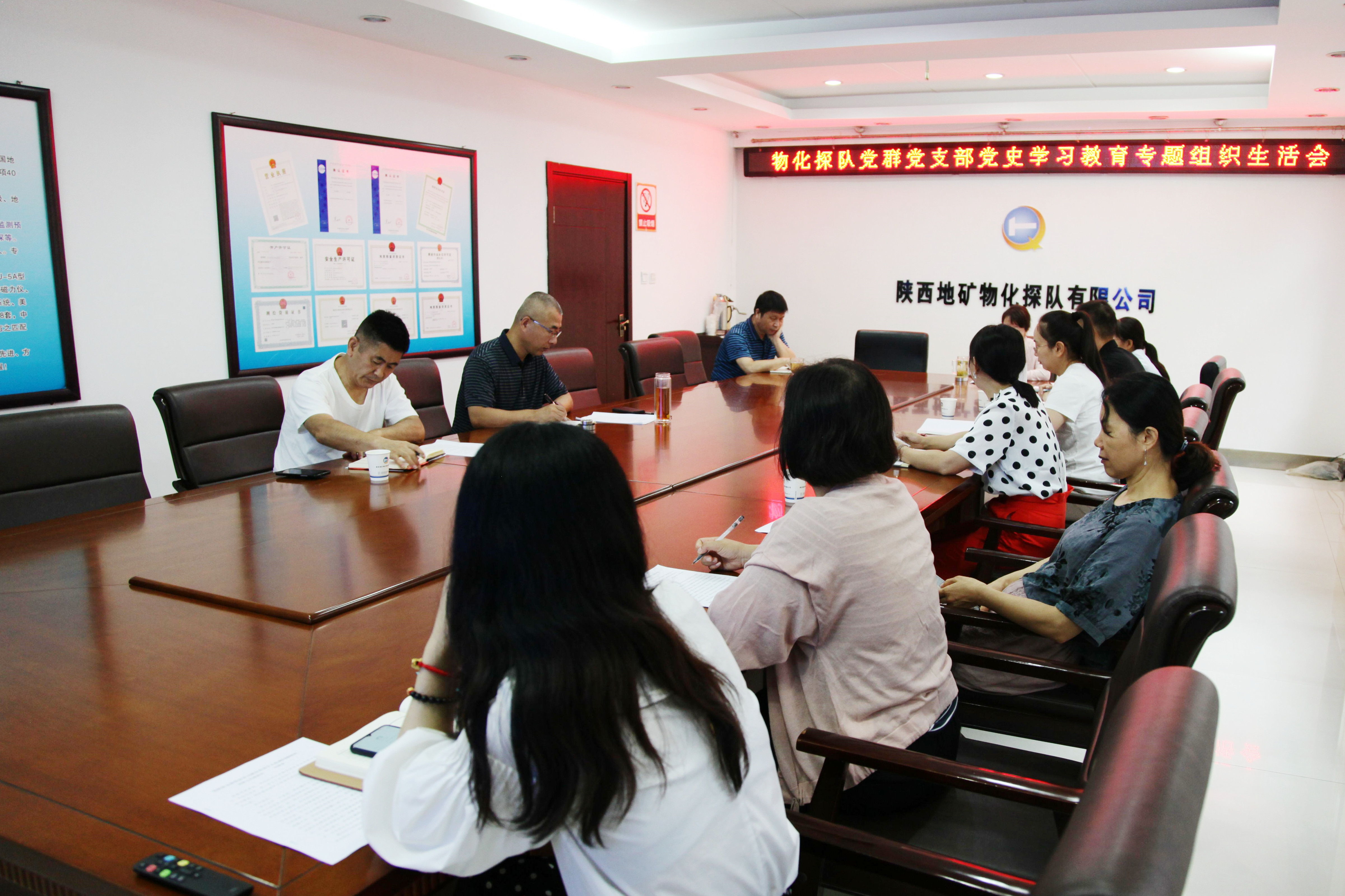??? 8月13日,物化探隊黨委書記、執行董事、總經理李新勝參加黨群黨支部黨史學習教育專題組織生活會并作點評講話。黨群黨支部黨員參加會議。